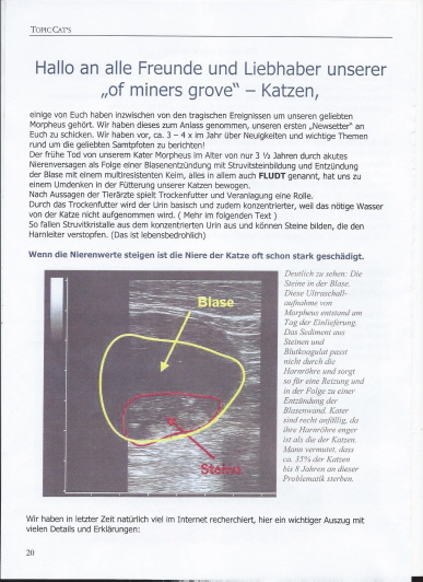 Unser erster Zuchtkater Timmy bekam, als er etwa 7 Jahre alt war, große Probleme mit seiner Blase und Steinen. Es ging letztlich so weit, dass seine Blase geöffnet und gespült werden musste. Er muss für den Rest seines Lebens Spezialfutter bekommen und seine Werte müssen engmaschig überprüft werden. Er frisst ausschließlich Trockenfutter - ich habe ihn mit 4 Jahren von einem anderen Züchter so übernommen und mir nichts dabei gedacht.