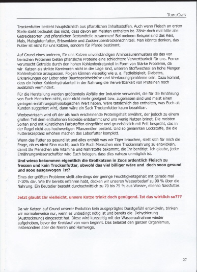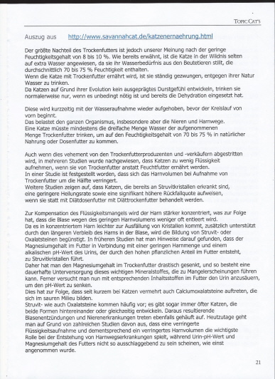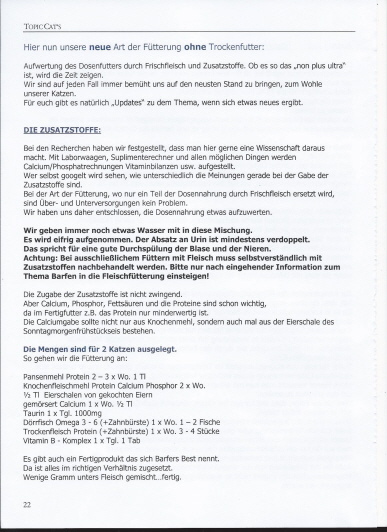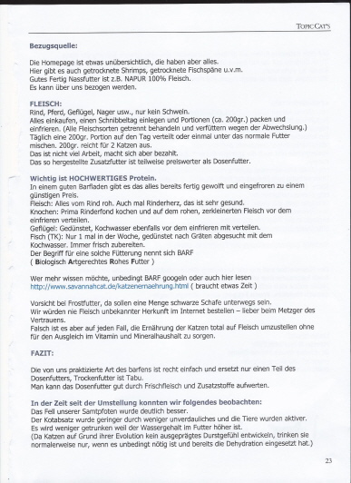 Ich weiß, dass ich lange Zeit als Exot belächelt wurde, was Katzenernährung betrifft - um so mehr freue ich mich, dass inzwischen viele Katzenzüchter nach ziehen, auch künftigen Katzenbesitzern mit Rat und Tat zur Seite stehen - und ich freue mich sehr, dass ich mit freundlicher Genehmigung von Cats Unlimited einen Bericht der Vereinszeitung "Cats Without Borders" hier zeigen darf! (Ausgabe 03. Quartal 2015)